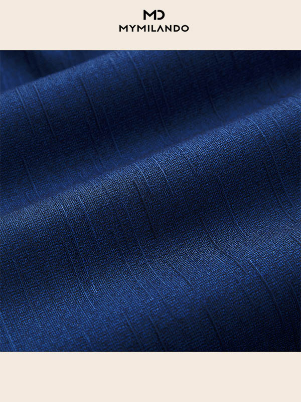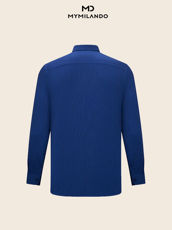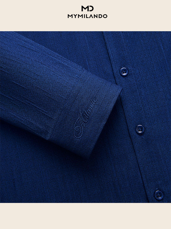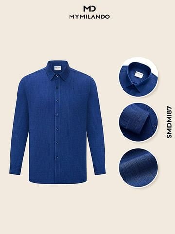 Không đơn thuần là một chiếc sơ mi trơn, mẫu SMDM187 là bản nâng cấp hoàn hảo cho tủ đồ quý ông. Sở hữu tông màu Xanh Đậm (Deep Blue) quyền lực, điểm nhấn đắt giá nằm ở họa tiết vân dọc chìm trên bề mặt vải. Hiệu ứng này không chỉ tạo chiều sâu sang trọng cho trang phục mà còn giúp người mặc trông thon gọn, đĩnh đạc hơn. Chi tiết thêu chữ ký Milando tinh xảo ở cổ tay áo là dấu ấn khẳng định vị thế và gu thẩm mỹ khác biệt.