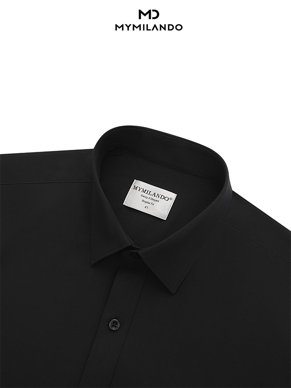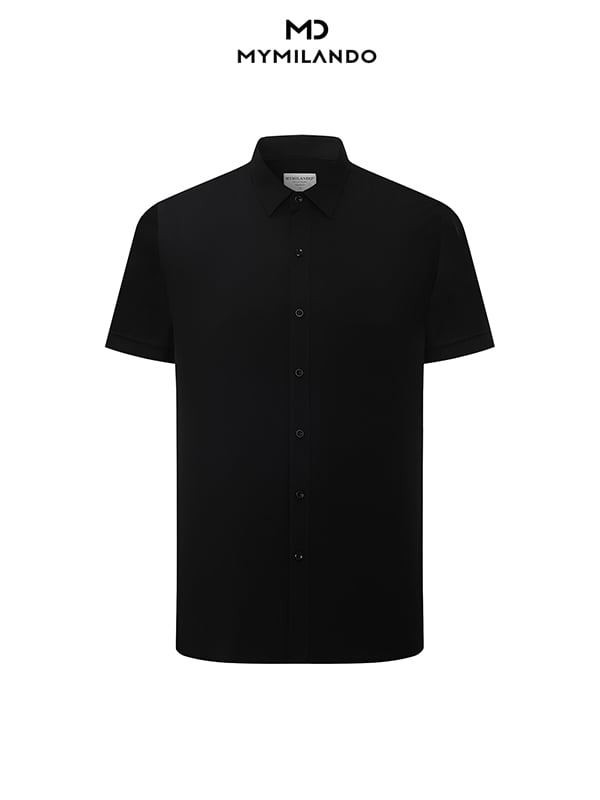 ÁO SƠ MI NAM NGẮN TAY MILANDO – ĐEN TRƠN CO GIÃN (Mã: SMCMI298)