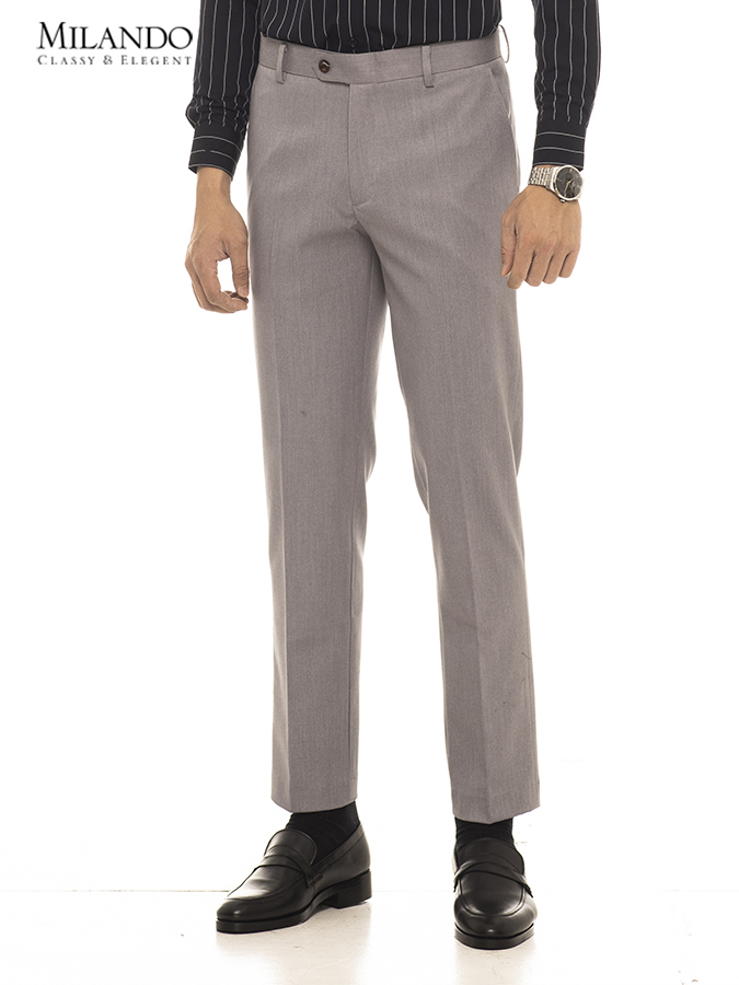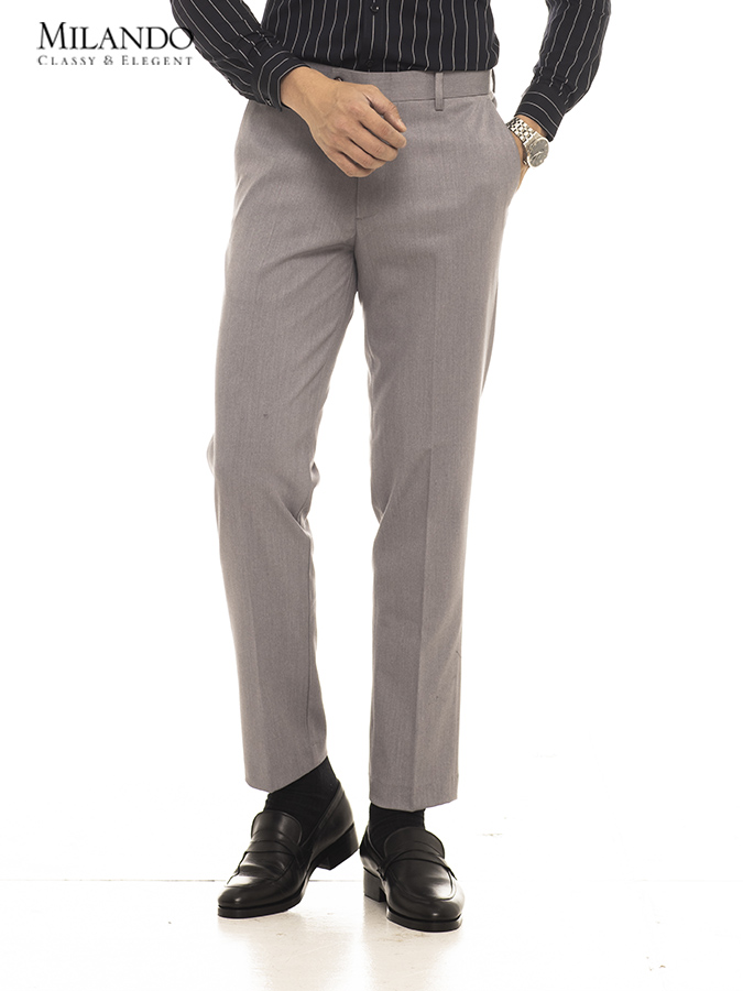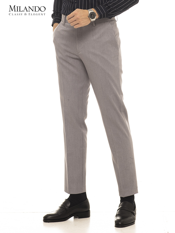 - Quần âu nam Milando được thiết kế theo Form ôm body, dáng quần tây với túi sẻ 2 bên kèm theo túi cài đăng sau tôn dáng người mặc.