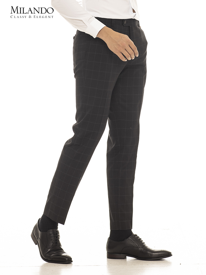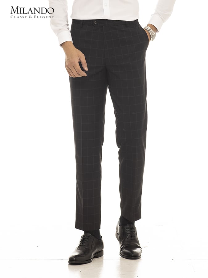 - Quần âu nam Milando được thiết kế theo Form ôm body, dáng quần tây với túi sẻ 2 bên kèm theo túi cài đăng sau tôn dáng người mặc.