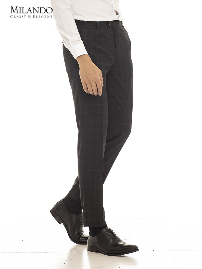 - Quần âu nam dễ kết hợp với đồ khác kèm theo họa tiết kẻ thời trang hiện đại.